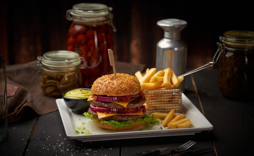 Een echte klassieker! De Rede Burger met Rundvlees en Cheddar kaas.